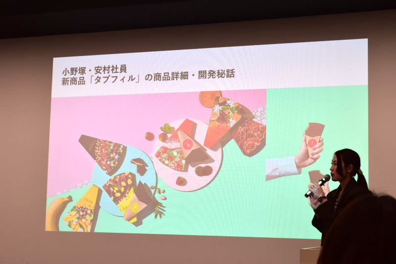 2026年バレンタイン新商品発表会では、Tabfill(タブフィル)の開発担当者である小野塚さん、安村さんの話を聞くことができました。